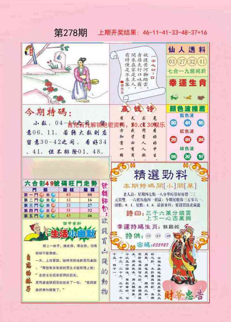 278期:三行中特【土金水】开: |